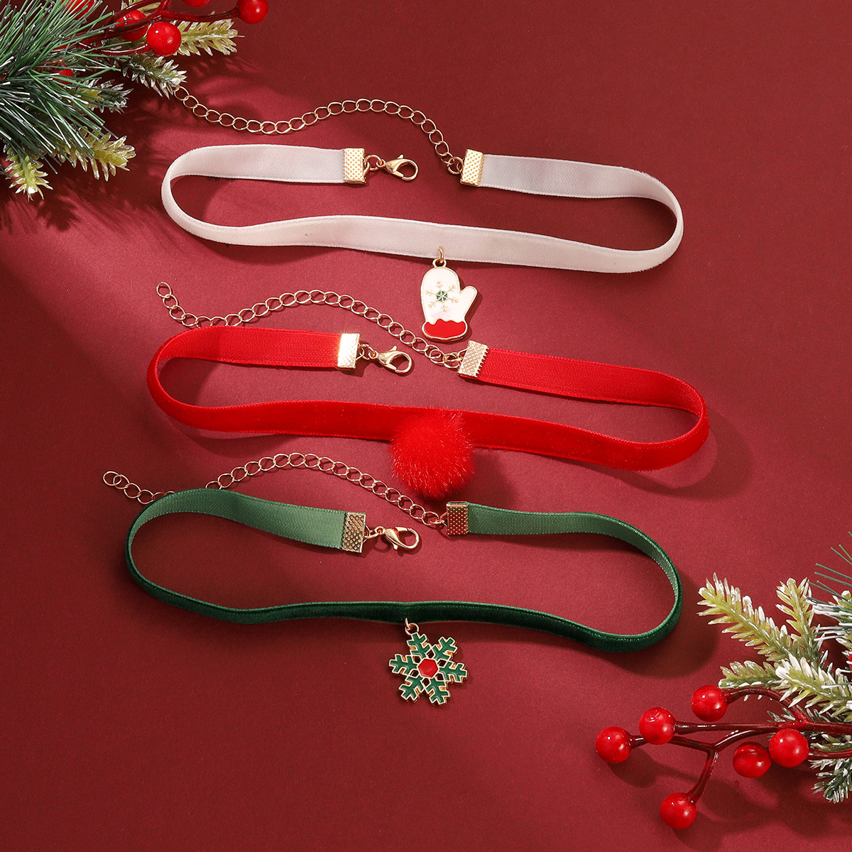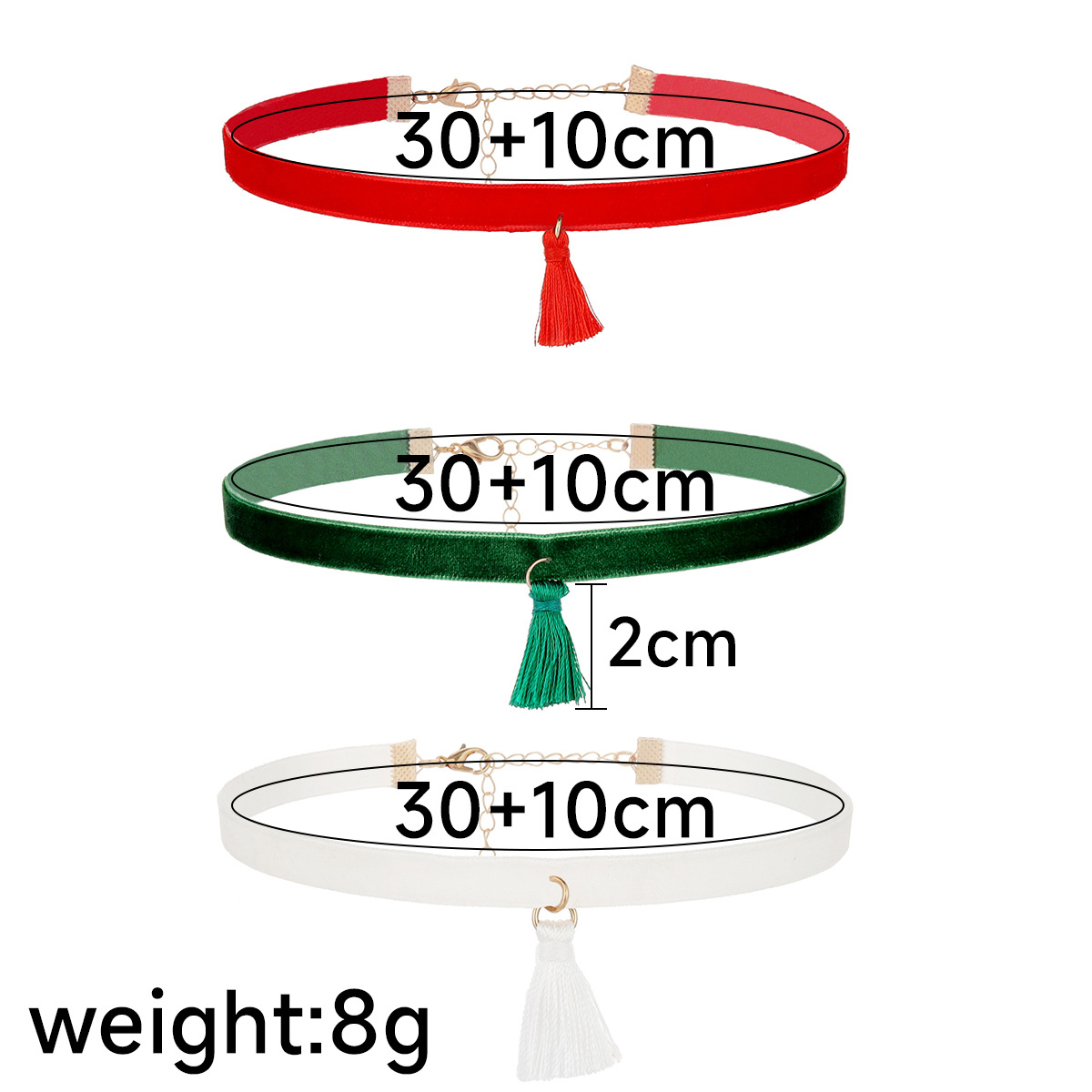 This listing is for a complete set of 3 velvet chokers in red, green, and white, ensuring you receive the entire festive collection. Capture the nostalgic spirit of the season with this handmade Christmas velvet choker set. Drawing inspiration from 90s fashion and vintage holiday aesthetics, this trio features soft velvet bands adorned with alloy charms and distinctive twisted link chains.The set embodies a retro-modern charm, perfect for adding a touch of vintage flair to your holiday outfits. Each choker is handmade with attention to detail, from the rich velvet material to the intricately designed chains and charms. The classic red, green, and white color scheme pays homage to traditional Christmas colors while maintaining a contemporary wearable style.Ideal for holiday parties, Christmas photoshoots, or as a unique gift for fashion-forward friends. The adjustable design ensures a comfortable fit for various neck sizes, while the lightweight construction makes them perfect for all-day wear during festive celebrations.