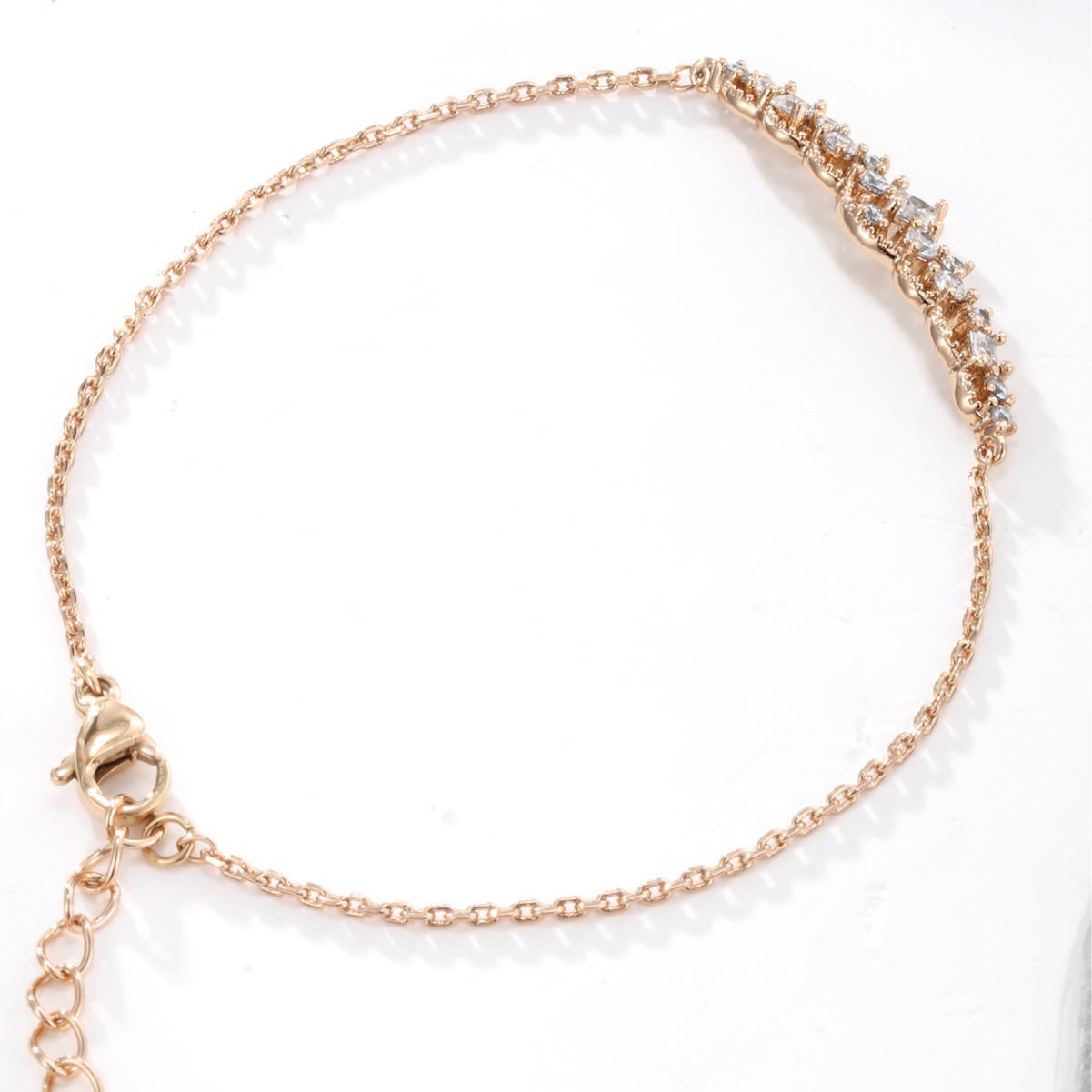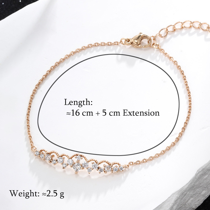 Refined Simplicity An ultra-fine chain paired with a delicately detailed crystal bar creates a light, graceful look that feels modern, elegant, and effortlessly wearable. Perfect for Layering Minimal enough to wear alone, yet ideal for stacking alongside a favourite watch or layered with other gold-tone chains for a softly textured finish. Warm Gold-Tone Glow Finished in a rich, warm gold tone inspired by classic 18K hues, the bracelet carries a gentle radiance that complements every skin tone beautifully.