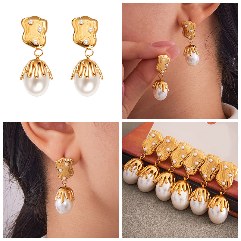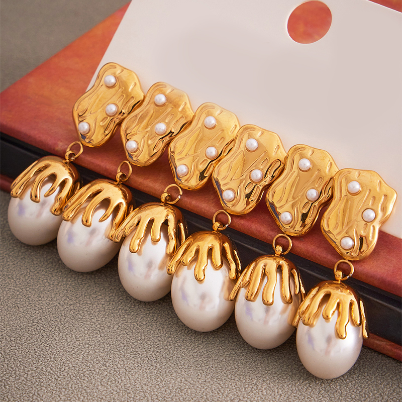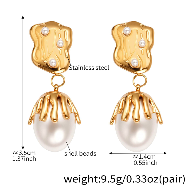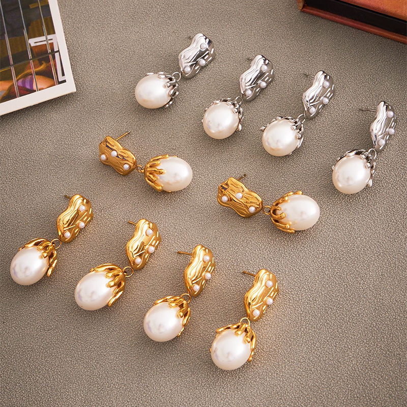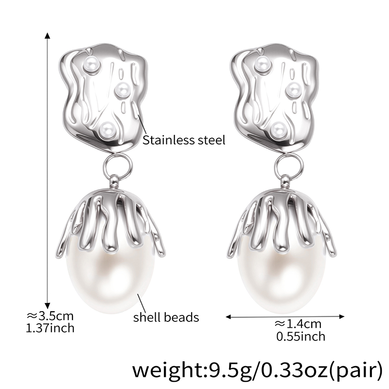Elevate your style with our Dripping Gold Leaf Pearl Drop Earrings, where artistic design meets everyday elegance. Crafted from hypoallergenic 304 stainless steel, these earrings feature a unique melting leaf design that appears to cascade into three delicate pearls, culminating in a graceful drop pearl at the bottom. The combination of textured metal and luminous pearls creates a captivating visual contrast that catches light beautifully.Available in both warm gold and cool silver finishes, these earrings offer versatile styling options to complement any outfit. The gold version radiates luxurious warmth, while the silver option provides modern sophistication. Each piece is meticulously crafted to ensure durability and lasting shine, making them suitable for daily wear without tarnishing or causing skin irritation.Perfect for fashion-forward individuals who appreciate attention to detail, these earrings transition seamlessly from daytime casual to evening elegance. The lightweight construction (9.5g/pair) ensures comfortable all-day wear, while the secure backing keeps them firmly in place. ✨ An ideal choice for adding a touch of refined artistry to your jewelry collection or as a thoughtful gift for loved ones who appreciate unique, stylish accessories.