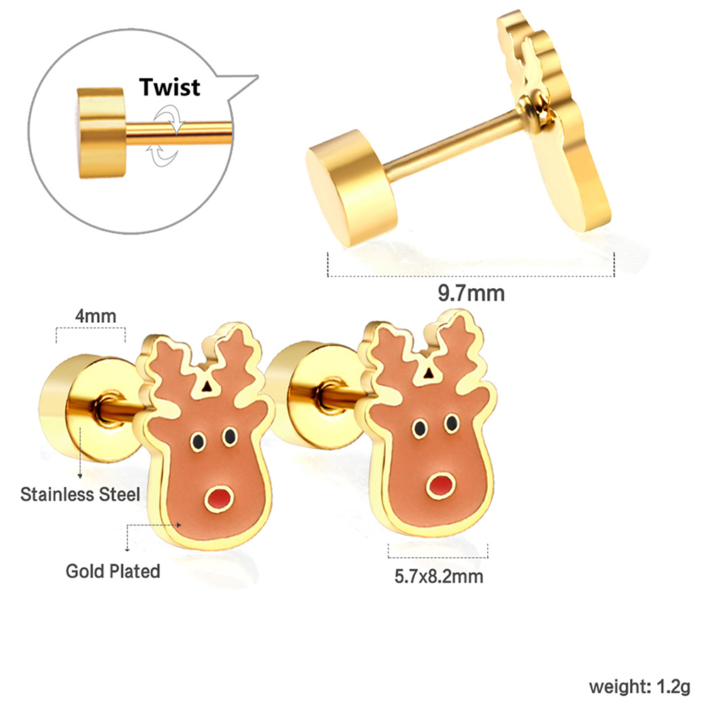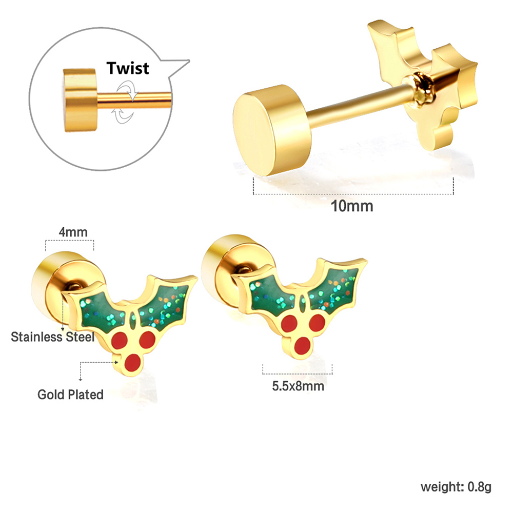 Celebrate the holiday season with our Festive Christmas Stud Earring Collection, featuring delicate designs crafted from stainless steel with a luxurious 18k gold plating finish. Using advanced PVD vacuum plating technology, each piece ensures exceptional durability and a long-lasting, tarnish-resistant shine. The lightweight construction (2g/pair) provides all-day comfort, making them perfect for extended wear during holiday festivities.Each design showcases intricate Christmas motifs, brought to life with precise detailing. The combination of premium stainless steel and high-quality plating offers a hypoallergenic and secure wearing experience, ideal for sensitive ears.Perfect for gift-giving or as a special treat, these earrings capture the joy of the season with timeless elegance. ✨ They arrive in festive packaging, ready to bring a touch of Christmas magic to any outfit.