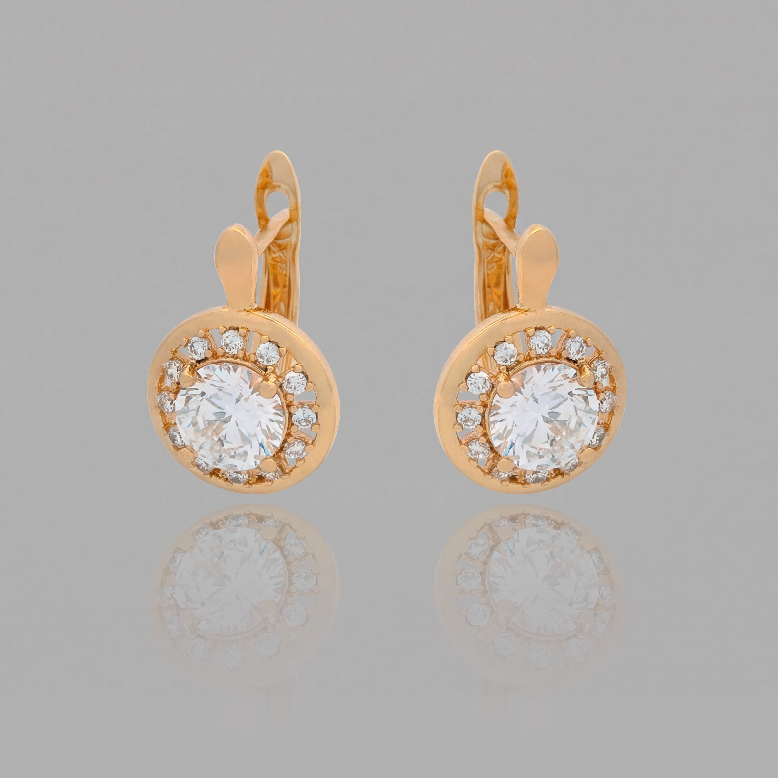Classic Crystal Halo Leverback Earrings – Gold