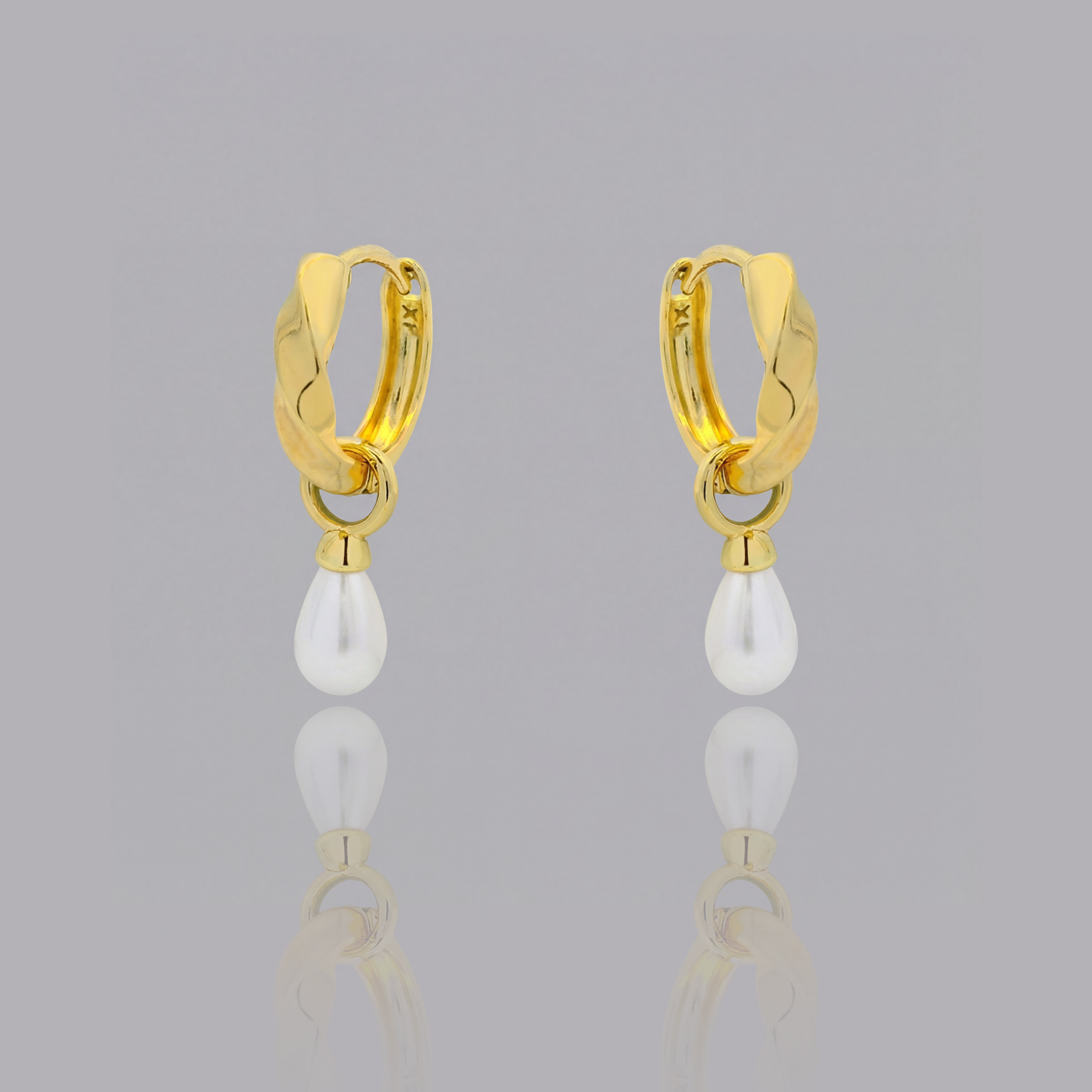Textured Brilliance The twisted rope-style hoop catches the light beautifully, adding depth and visual interest compared to a classic smooth huggie. Lustrous Drop A softly suspended teardrop pearl moves subtly as you do, bringing warmth, elegance, and a delicate sense of fluidity to the design. Versatile Gold Tones Available in two gold-tone colour options to suit your personal style: