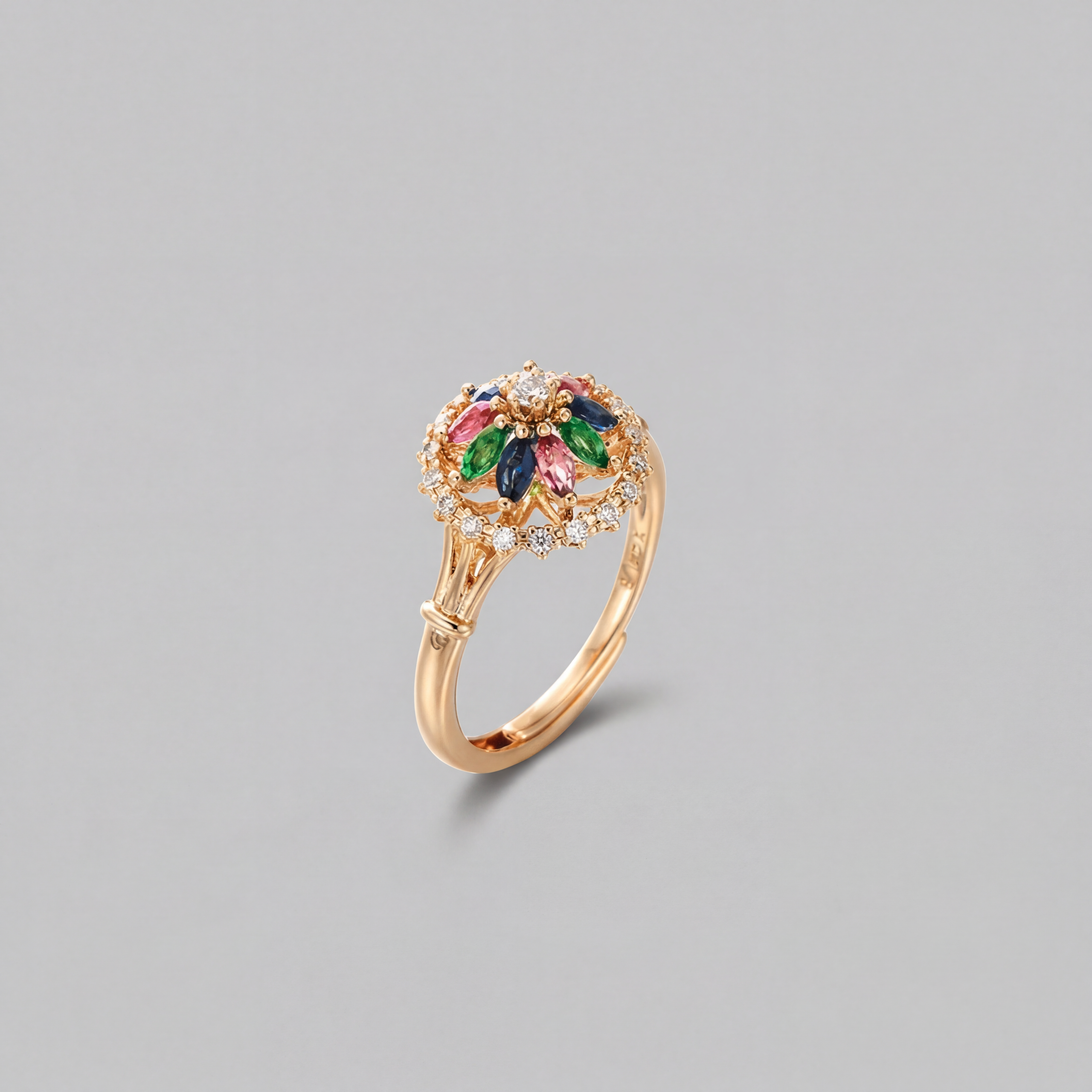 Multi-Stone Bloom A harmonious mix of jewel-toned crystals adds depth and richness to the design, creating a striking, vintage-inspired look that instantly lifts any outfit. Floral Sparkle Marquise-cut stones are arranged like delicate petals around a shimmering centre, maximising light reflection and forming a radiant, flower-like silhouette. Adjustable Comfort Designed with an open band, the ring can be gently adjusted for a comfortable fit, making it an easy, versatile choice without the need for exact sizing.THE SPECS