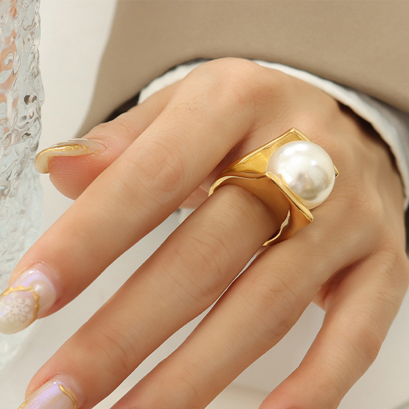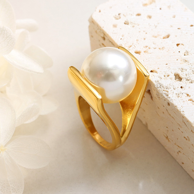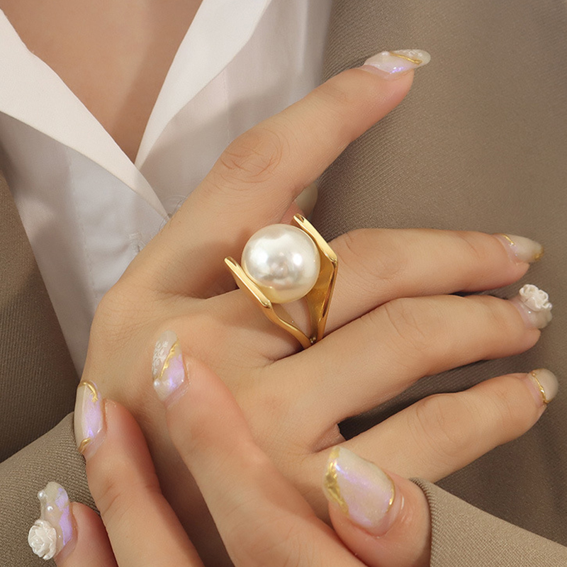 Discover the perfect blend of organic elegance and modern design with our Luminous Pearl-Textured Y-Shape Ring. This statement piece features a sophisticated faux pearl with a specially formulated pearl-gloss coating that captures the gentle iridescence and warm glow of natural pearls. The pearl’s surface exhibits delicate light diffraction that creates a realistic pearlescent effect, appearing remarkably natural while offering perfect symmetry and durability that surpasses genuine pearls.Crafted from premium titanium steel with 18K gold plating, the ring maintains its luxurious appearance through daily wear. The architectural Y-shape band is designed for both comfort and style, gracefully contouring to your finger while making a modern statement. Ideal for those who appreciate contemporary elegance, this ring transitions effortlessly from daytime sophistication to evening glamour. Its lightweight construction and hypoallergenic properties make it suitable for sensitive skin.✨ Perfect for stacking with other minimalistic rings or wearing as a standalone statement piece.