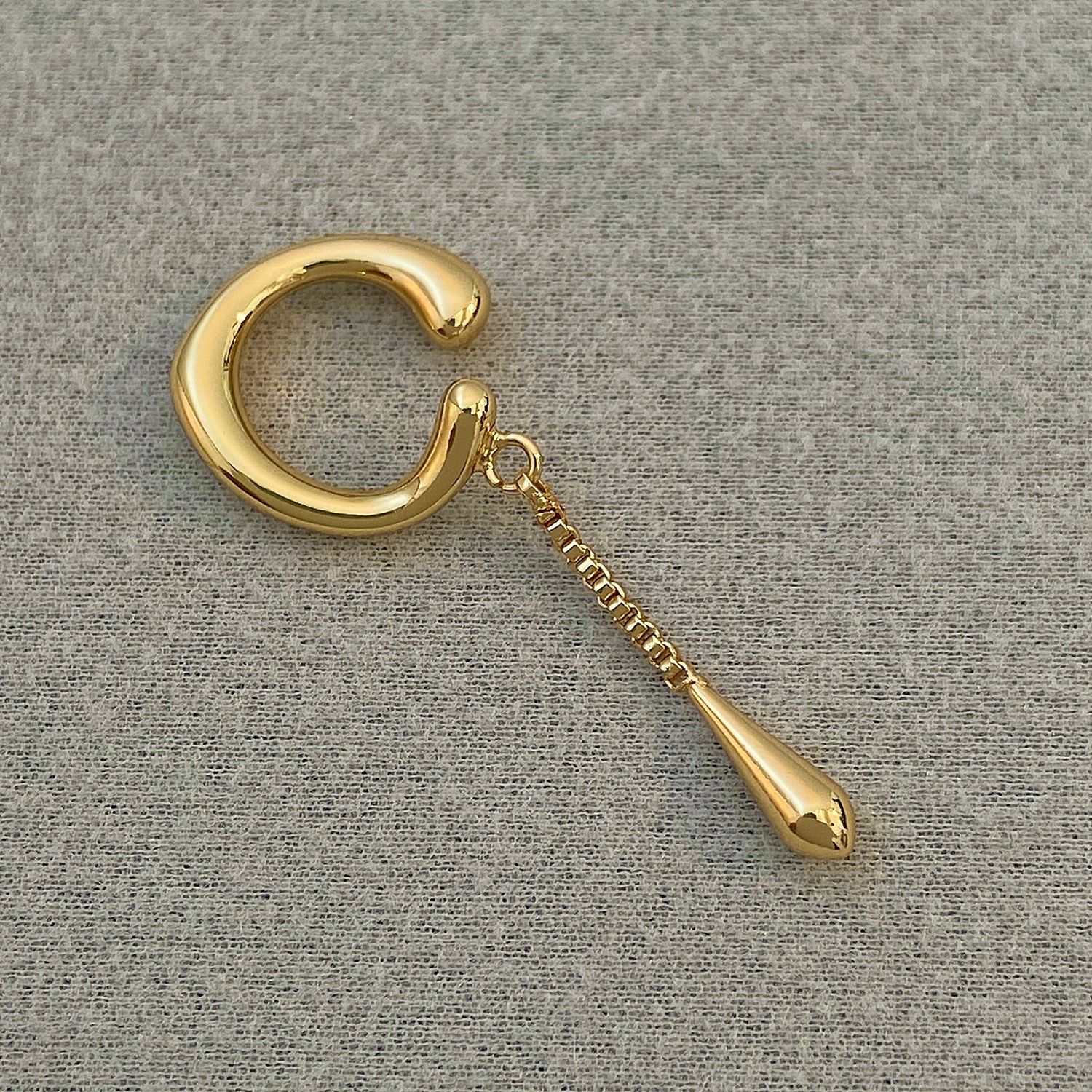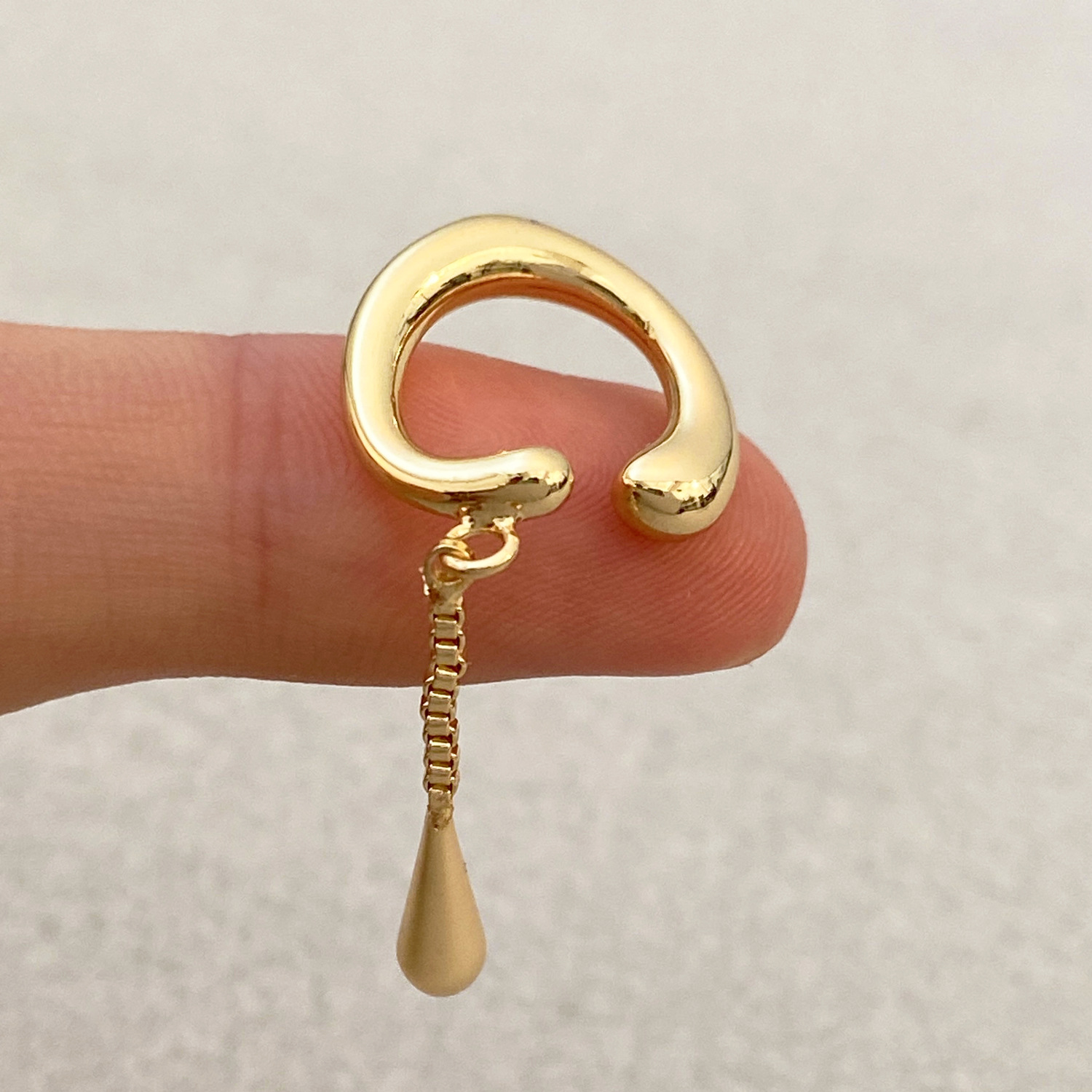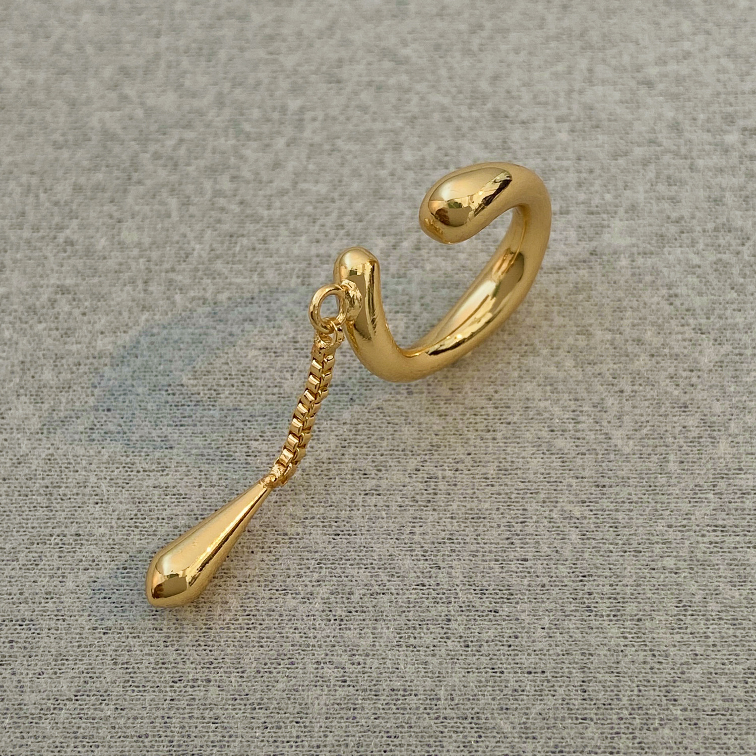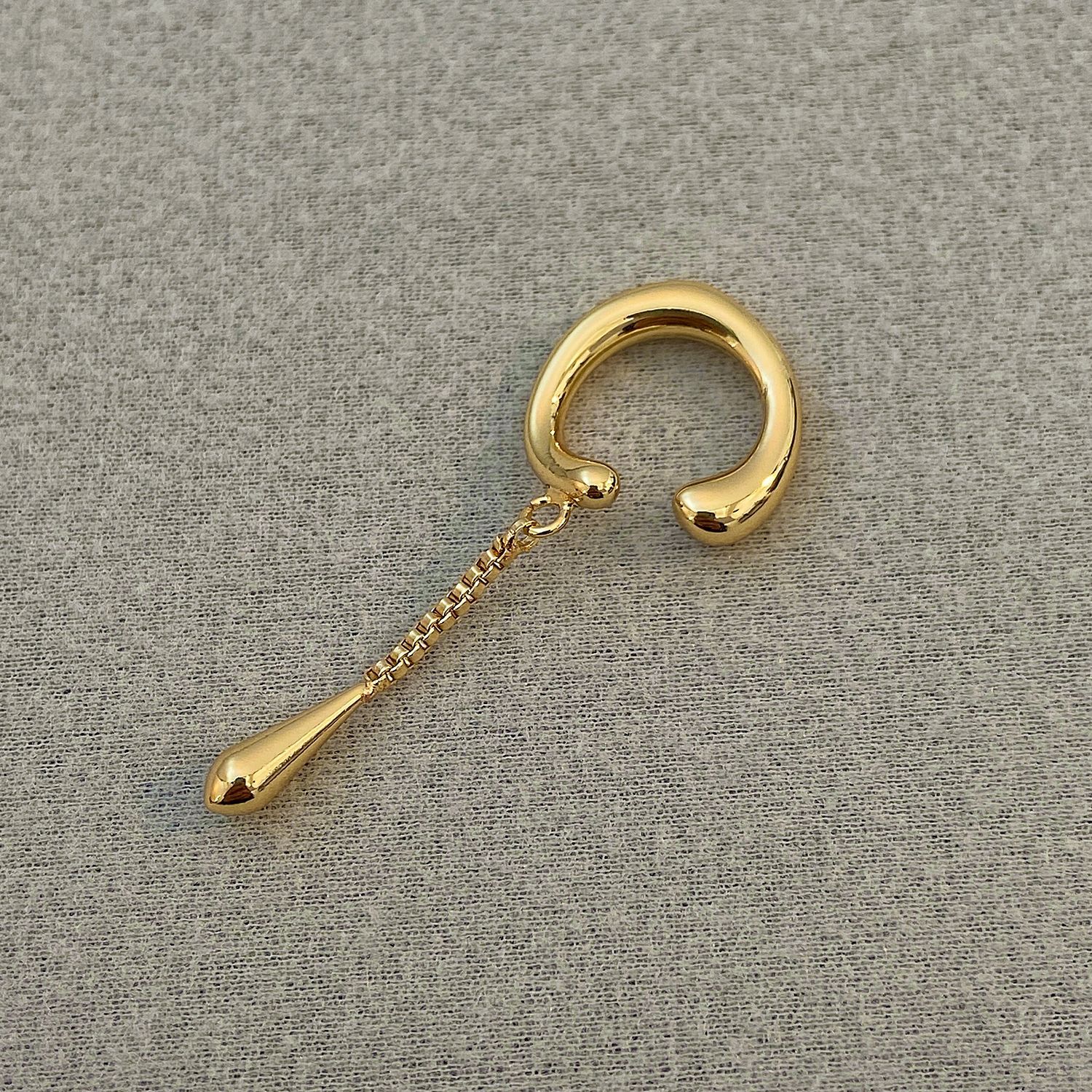 Minimalist Gold Drop Ear Cuff with Teardrop PendantMinimalist Gold Drop Ear Cuff with Teardrop Pendant