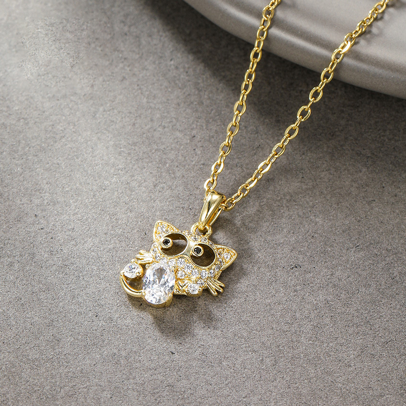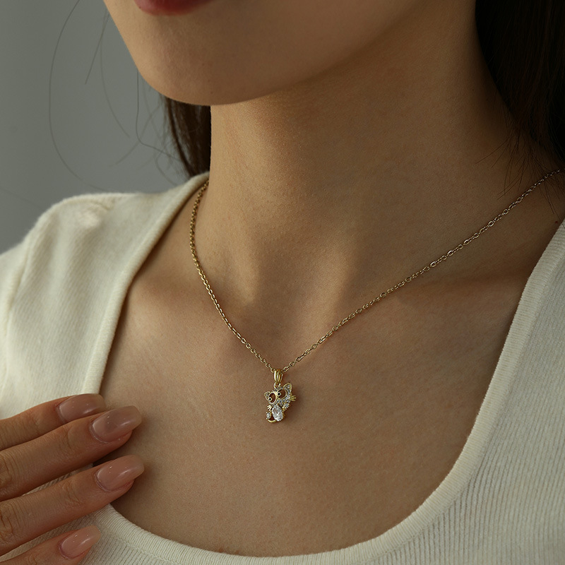 Whimsical Gaze Designed with striking black crystal eyes, the kitten charm has a lively, affectionate expression that captures the playful spirit of feline companions. Radiant Shine The body is meticulously pavé-set with clear crystals, anchored by a larger oval-cut zirconia centre to maximise brilliance and light reflection. Perfectly Petite Small enough to feel dainty yet bright enough to be noticed, this pendant is sold on its own, giving you the freedom to style it on a fine gold chain or layer it with other charms.THE SPECS
