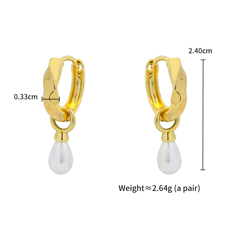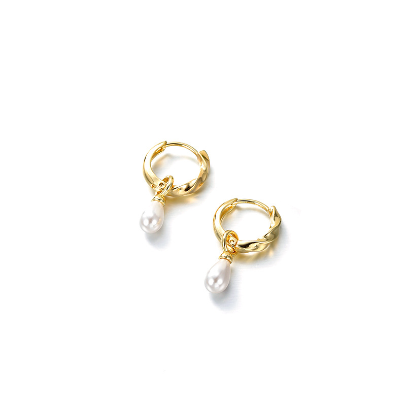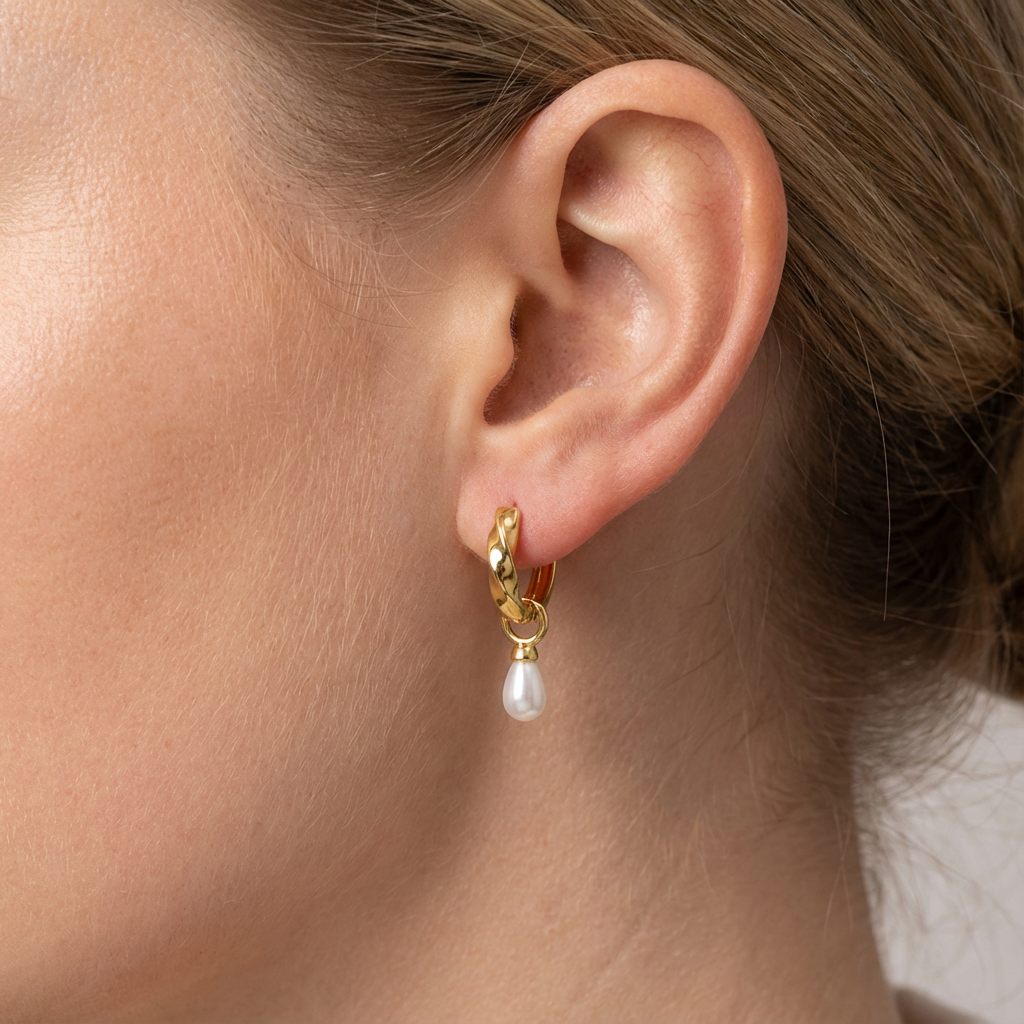 Textured Brilliance The twisted rope-style hoop catches the light beautifully, adding depth and visual interest compared to a classic smooth huggie. Lustrous Drop A softly suspended teardrop pearl moves subtly as you do, bringing warmth, elegance, and a delicate sense of fluidity to the design. Versatile Gold Tones Available in two gold-tone colour options to suit your personal style:- 14K-Inspired Gold Tone: A soft, pale champagne gold with a clean, modern feel