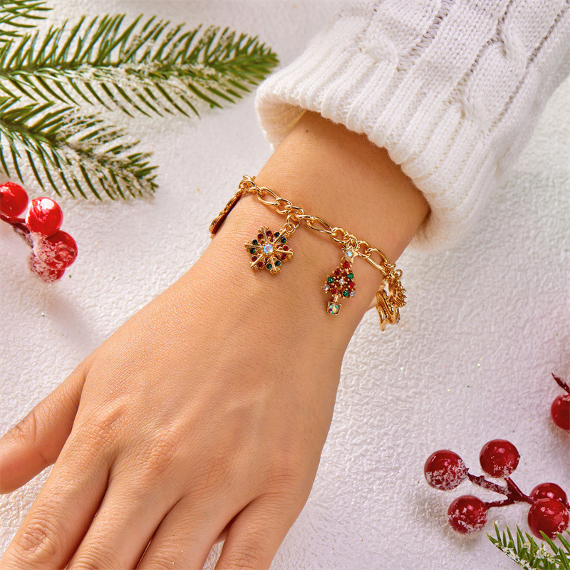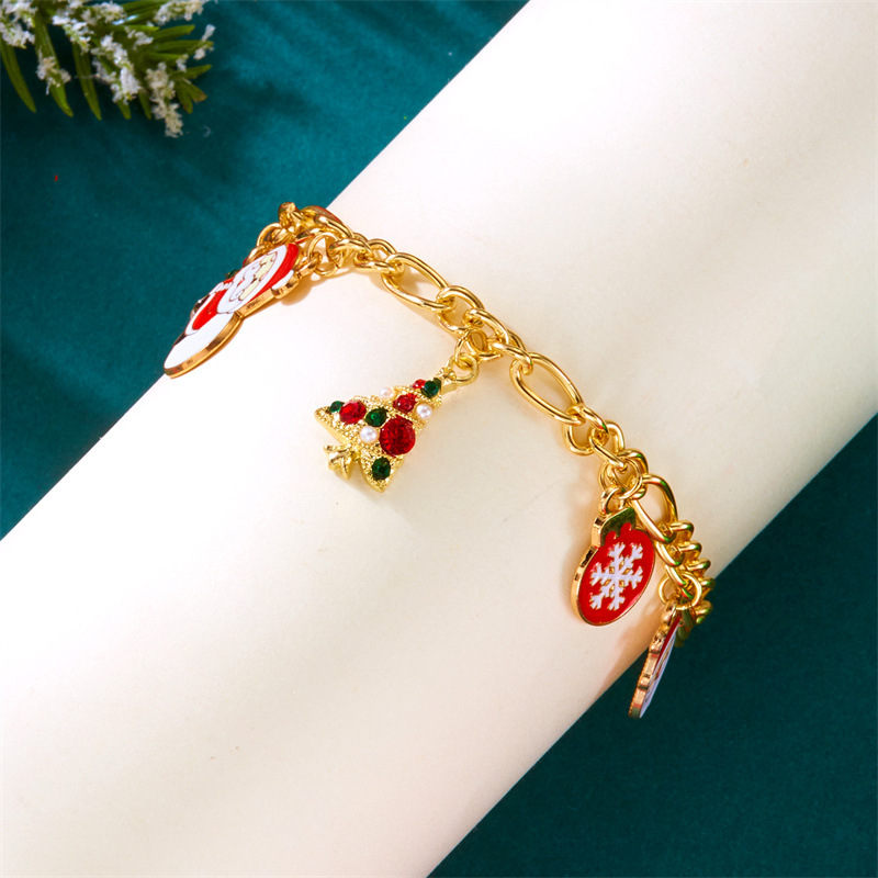 The rich gold-toned finish complements the vibrant enamel colors, creating a warm, festive appearance that pairs beautifully with both casual and formal holiday attire. Designed for lasting wear, the zinc alloy construction maintains its luminous finish throughout seasonal celebrations while the secure clasp ensures reliable wear. Perfect for Christmas gatherings, gift exchanges, or adding festive cheer to everyday outfits, this character-filled bracelet brings childhood magic to your wrist.