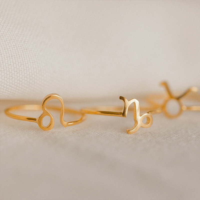 Embrace the cosmos with our Zodia Ring Set, a collection of elegantly designed adjustable rings that celebrate your unique astrological identity. Crafted from premium 18K gold-plated stainless steel, each ring features a minimalist open-band design adorned with a delicate zodiac symbol and a sparkling birthstone accent. The adjustable fit ensures a comfortable, customized wear for most finger sizes, while the polished gold-tone finish adds a touch of timeless luxury to any outfit.Designed for everyday wear, these rings are both water-resistant and tarnish-free, maintaining their radiant shine through daily activities and changing seasons. The open-ended design symbolizes endless possibilities, while the zodiac motifs and birthstone details offer a personal connection to the celestial forces that guide us. Each ring is lightweight yet durable, making it perfect for stacking or wearing as a standalone statement piece.Whether you’re celebrating your own sign or gifting a loved one, the Zodia Ring Set blends symbolic meaning with modern elegance. The hypoallergenic stainless steel base ensures comfort for sensitive skin, while the intricate craftsmanship reflects a commitment to quality and style.